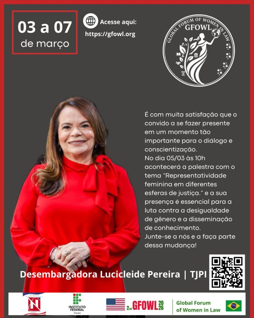 As desembargadoras Lucicleide Pereira Belo e Maria de Fátima Dias, do Tribunal de Justiça do Piauí (TJPI), foram convidadas a atuar como palestrantes no II Global Forum of Women in Law (GFOWL), evento internacional que será realizado entre os dias 3 e 7 de março de 2026, na Southeast Missouri State University, nos Estados Unidos.