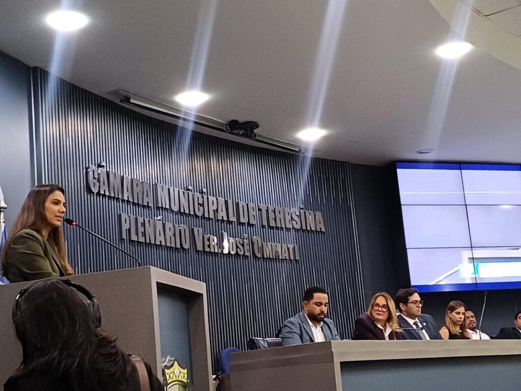 A juíza Daiane de Fátima Soares Fontan, que responde pela 1ª Vara da Infância e da Juventude da Comarca de Teresina, participou, nesta terça-feira (18), da Sessão Solene, realizada na Câmara Municipal, em homenagem ao Dia do Conselheiro Tutelar. O momento reuniu autoridades, representantes da rede de proteção e conselheiros tutelares para celebrar o trabalho desenvolvido em defesa dos direitos de crianças e adolescentes.
